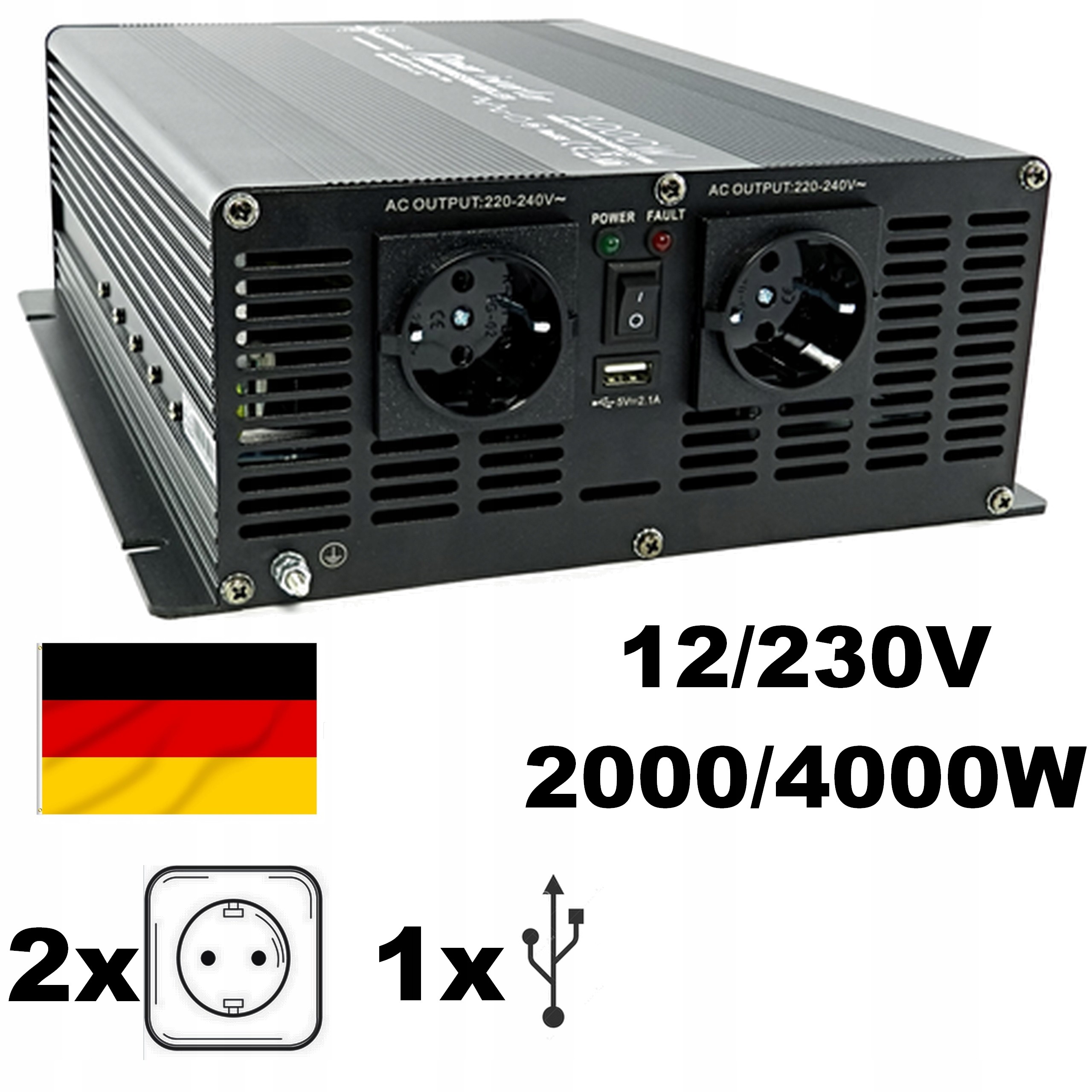 PRZETWORNICA INWERTER NAPIĘCIA FALOWNIK 12V/230V MOC 2000W/4000W