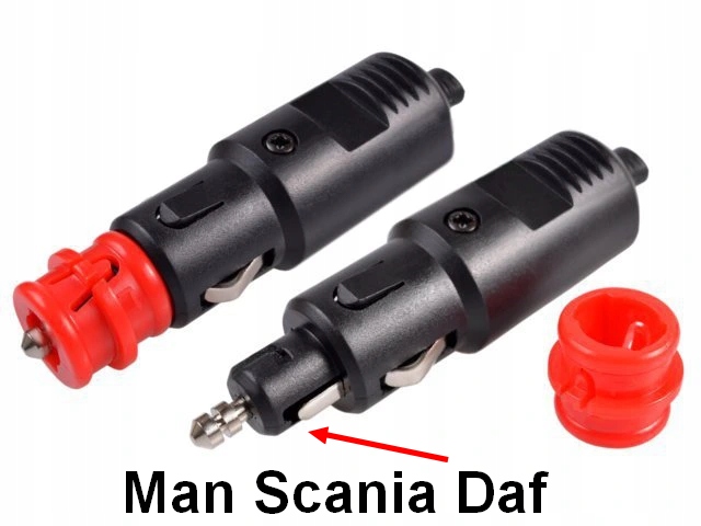 Wtyk zapalniczki z adapterem pasuje gniazd stosowanych w samochodach ciężarowych: Man,Scania,Daf