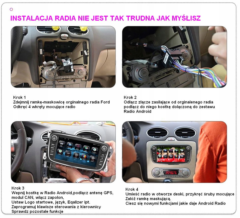 Radio pasuje w miejsce oryginalnego radia wystarczy wykręcić stare radio i wstawić nowe urządzenie, bez żadnych przeróbek , wszystkie kostki pasują, działa sterowanie z kierownicy.