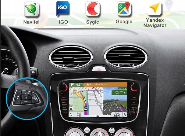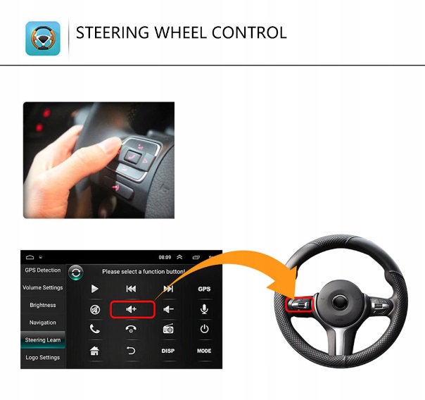 • Sterowanie z kierownicy: dzięki funkcji możesz kontrolować głośność , przewijać utwory lub stacje radiowe