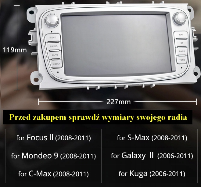 Przed zakupem proszę sprawdzić wymiary radia oryginalnego i porównać z wymiarami na aukcji