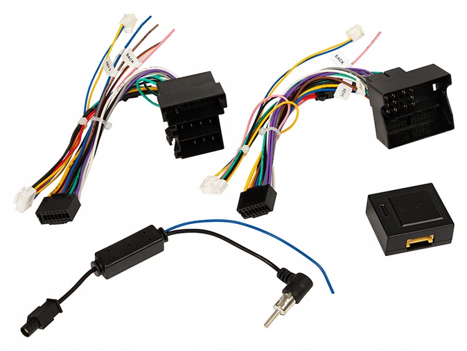 - Przewody z zarobioną kostką ISO i akcesoria montażowe