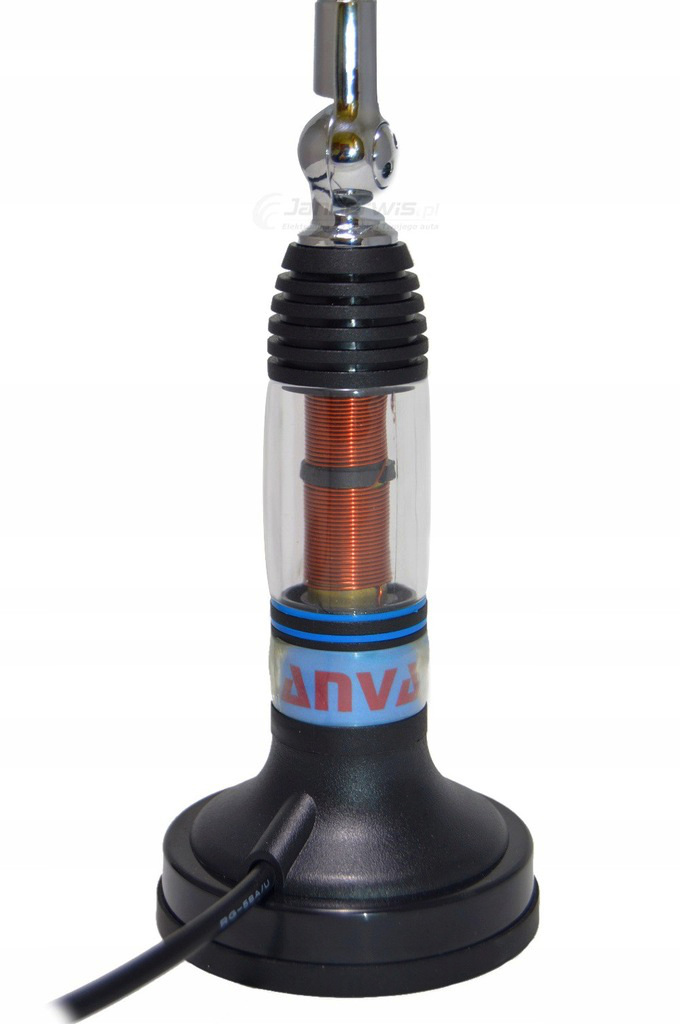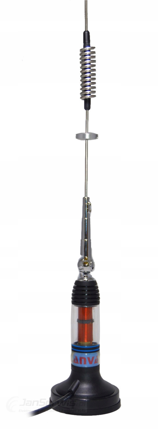 Antena przy długości 80cm posiada zysk 3dB , a podstawa magnetyczna wyposażona jest w bardzo silny magnes, dzięki czemu doskonale trzyma się dachu nawet podczas podróży z prędkością powyżej 200 km/h .4 m kabel pozwala na dogodne umieszczenie anteny w każdym samochodzie