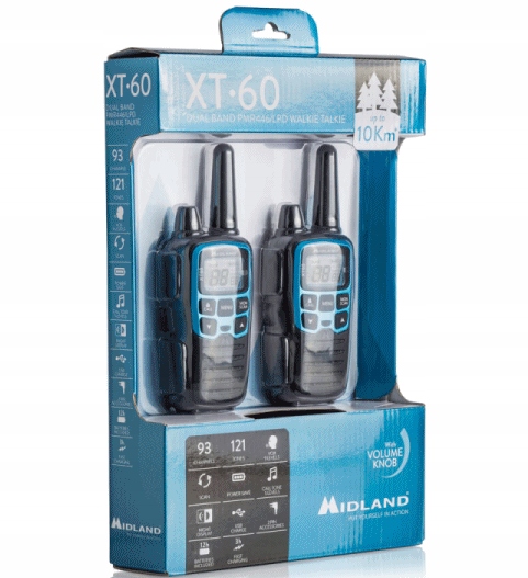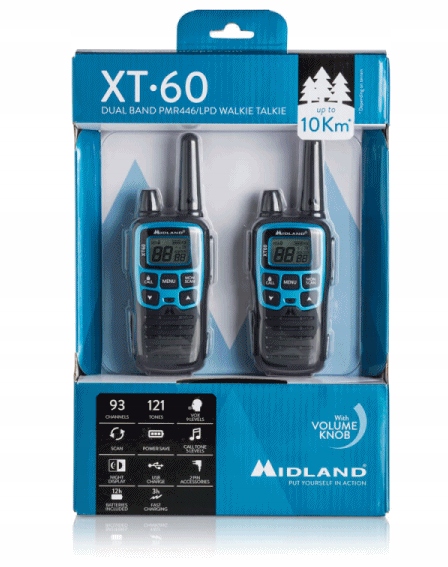 Za pomocą radia Midland XT60 można komunikować nawet do 10 km na otwartym terenie. Odległość komunikacji może się różnić w zależności od obszaru w którym przebywasz, a przeszkodami między dwoma radiem.