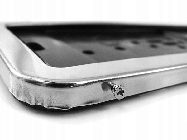 - uniwersalny design – ramki doskonale komponują się z chromowanymi dodatkowymi typu np. grill, felgi oraz listwy