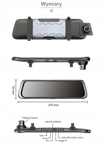 - Kąt widzenia 170st dla kamery przedniej, dla tylnej 140st