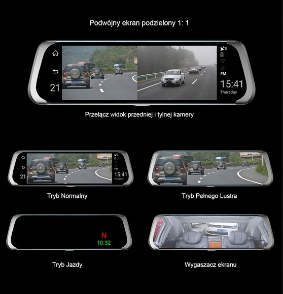 Technologia ta pozwala używać wideorejestratora jako lusterko wsteczne. Tradycyjne lusterka wsteczne oferują jedynie ograniczony kąt widzenia do tyłu, a przez większość czasu musimy się odwrócić, aby zobaczyć więcej, zwłaszcza gdy parkujemy. Rejestrator strumieniowy zapewnia także widok około 3 razy szerszy niż standardowe lusterko wsteczne. Co ważniejsze, widoczność jest dobra nawet w nocy czy w deszczowe dni.