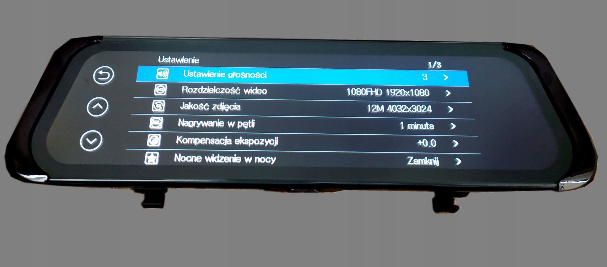 Wideorejestrator wyposażony jest w pełni dotykowy 9,66 calowy wyświetlacz który jest wygodny w obsłudze.Pozwala na sterowanie kamerą w opcji góra – dół
