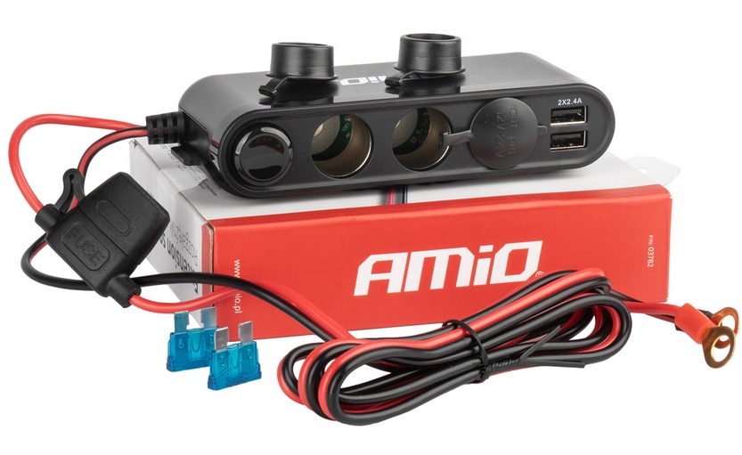 Rozdzielacz rozgałęźnik trójnik zapalniczki + woltmierz ładowarka USB USB-C 12V 24V AMIO-03782