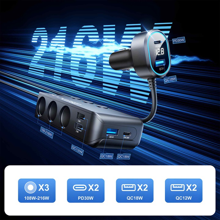 Osiągnij wyższy poziom wygody i wydajności ładowania w Twoim samochodzie dzięki naszemu urządzeniu – innowacyjnemu rozdzielaczowi do gniazda zapalniczki. Ten niezastąpiony gadżet oferuje AŻ 6 PORTÓW USB z czego dwa z technologią Quick Charge 3.0 oraz wbudowany woltomierz, dzięki czemu możesz jednocześnie ładować wiele urządzeń i monitorować napięcie pojazdu. Ciesz się szybkim ładowaniem i bezpieczeństwem podczas każdej podróży!