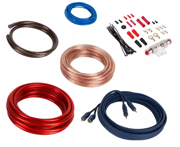 • Przewód głośnikowy (12 AWG): przezroczysty z czerwoną linią 2×26/0,20 CCA 4,2×8,4 mm; 6,1 m