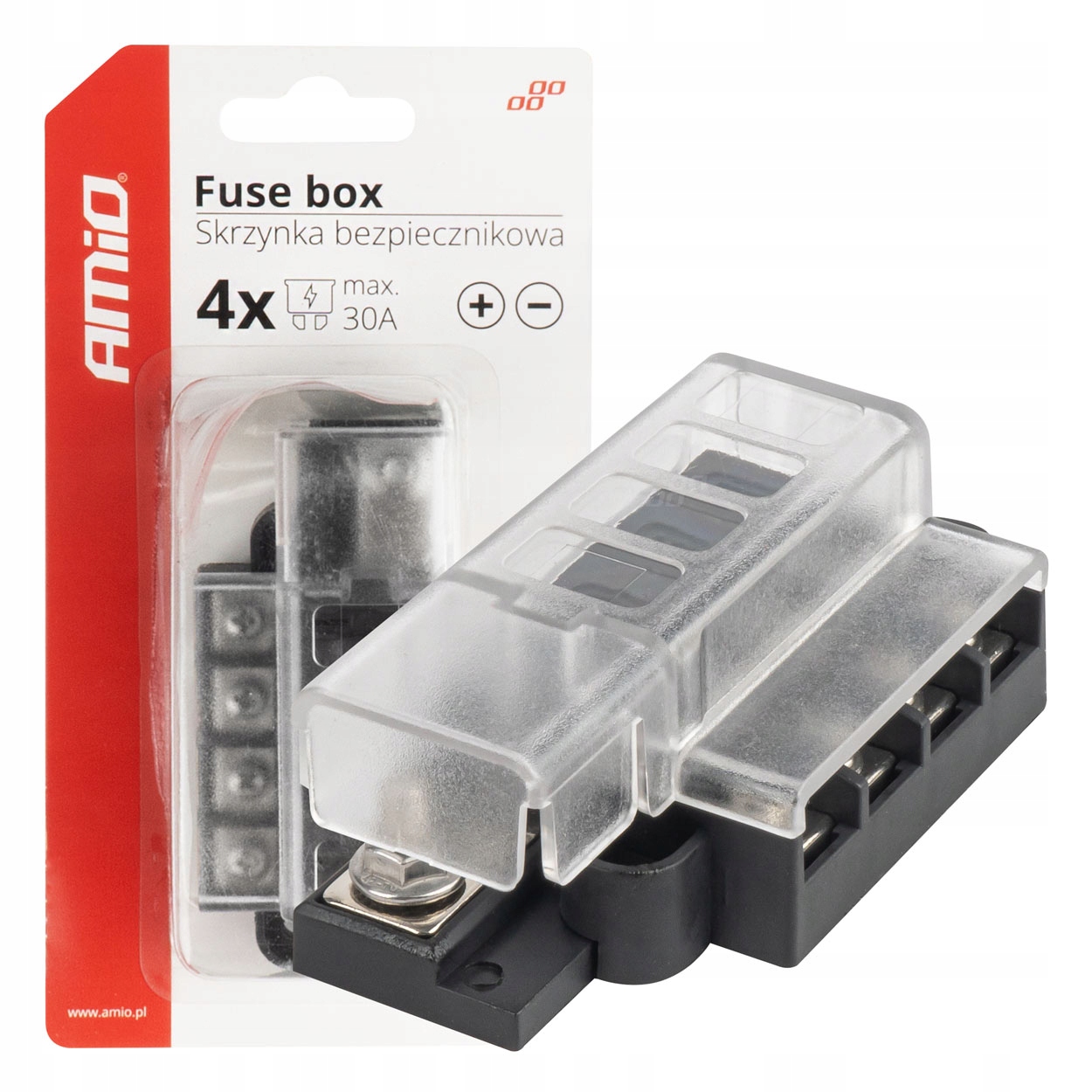SKRZYNIA BEZPIECZNIKOWA KONEKTORY ŚRUBOWE 4 GNIAZDA AMIO-03835