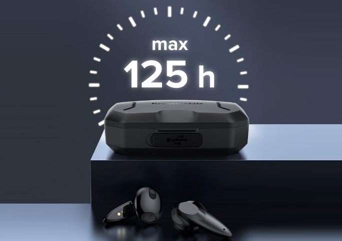 Douszne słuchawki Kruger&Matz M6 zostały wyposażone w baterie o pojemności 25 mAh, które zapewnią nawet 5-godzinne działanie, zarówno podczas słuchania muzyki, jak też w trakcie rozmów telefonicznych.
