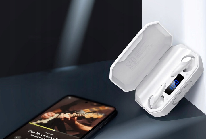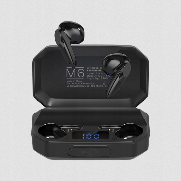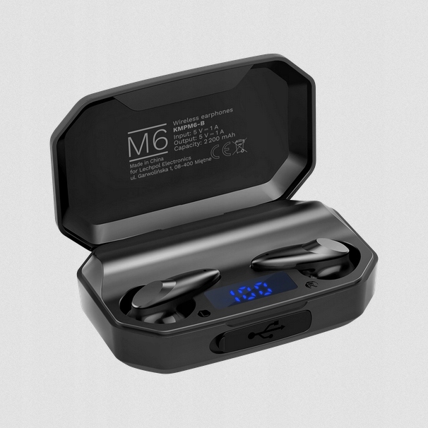Etui, które otrzymujesz ze słuchawkami bezprzewodowymi M6, nie tylko umożliwia ich ładowanie i bezpieczne przechowywanie. Dzięki wbudowanej baterii 2200 mAh staje się ono power bankiem, który pozwoli Ci doładować inne urządzenia.