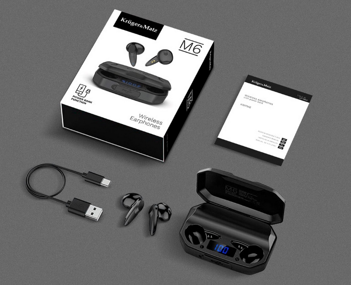 Bezprzewodowe słuchawki douszne z power bankiem Kruger&Matz M6