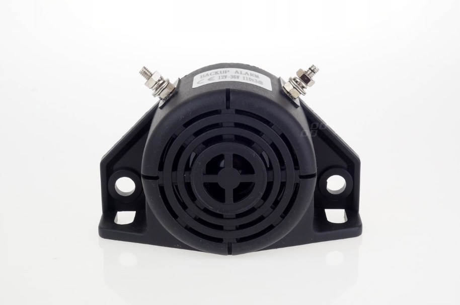 Akustyczny sygnał cofania uniwersalny, można go zamontować do samochodów osobowych, ciężarowych, maszyn rolniczych, wózków widłowych, koparek, ładowarek.