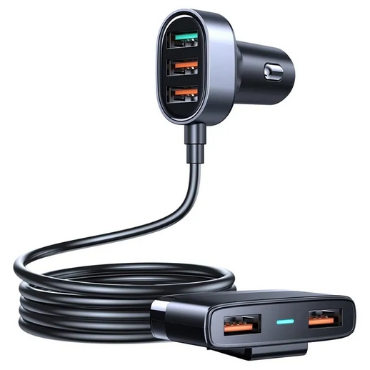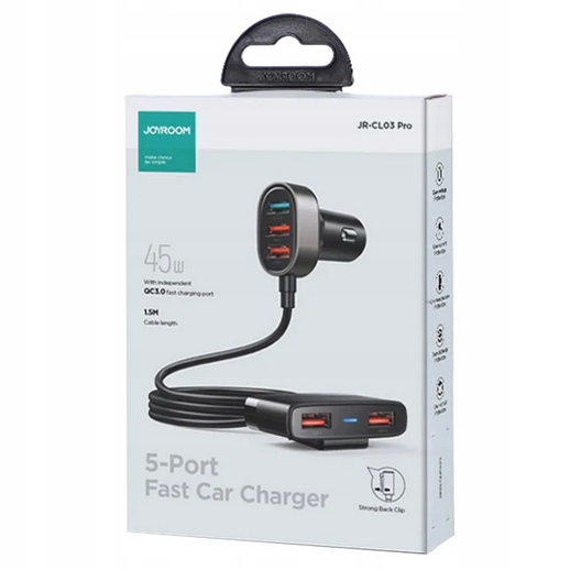Ładowarka samochodowa zapewniająca szybkie zasilanie w energię urządzeń elektronicznych to akcesorium, które warto zabrać ze sobą w każdą podróż. Ten produkt pozwoli Ci na jednoczesne ładowanie aż 5 urządzeń, a dodatkowo został wyposażony w przewód przedłużający o długości 1,5 m, dzięki czemu każdy z pasażerów może wygodnie podłączyć do niego swoje sprzęty. Ładowarka zapewnia duży prąd wyjściowy, dlatego proces zasilania jest wydajny i szybki. Wygodny klips pozwala na zamontowanie urządzenia na przykład za siedzeniem.