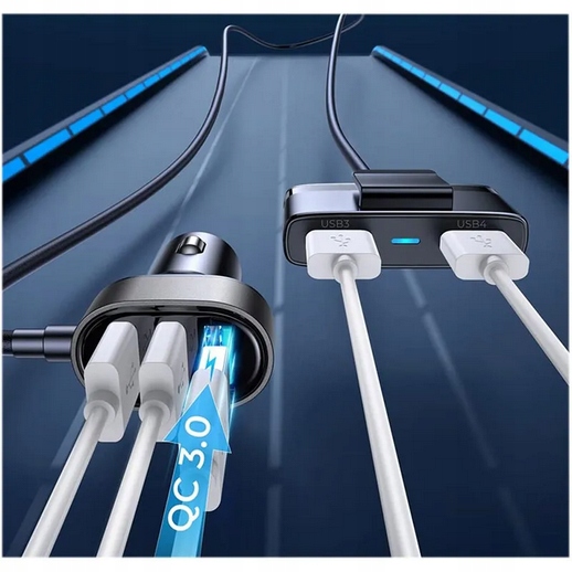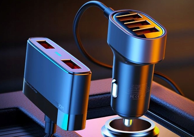 Szybka ładowarka samochodowa 5x USB 6,2 A z przedłużaczem WERSJA PRO