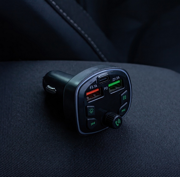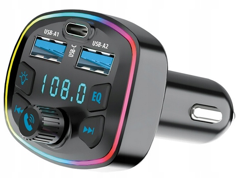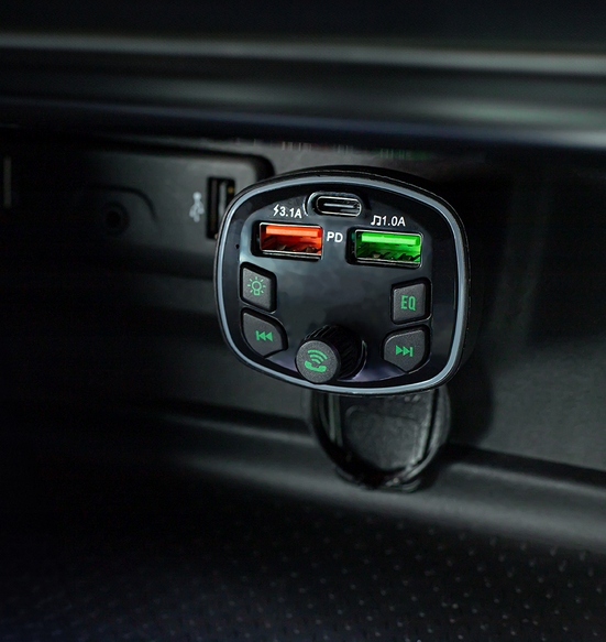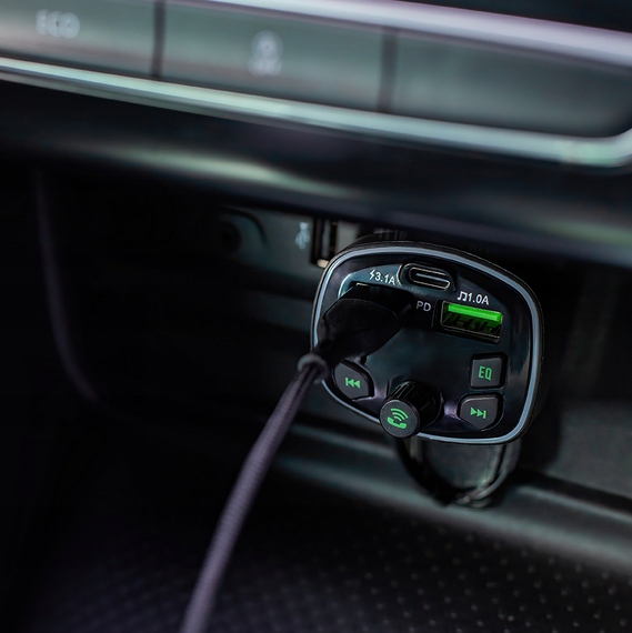Transmiter FM obsługuje pliki w formatach MP3 i WMA. Pozwala na podłączenie pendrive do jednego z dwóch portów USB transmitera i na odczyt muzyki z karty TF.