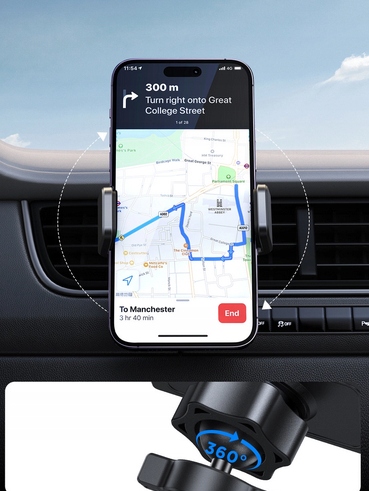 - Rotacja dla najlepszego kąta widzenia: Dostosuj kąt widzenia swojego telefonu dokładnie tak, jak tego potrzebujesz. Obejrzyj mapy, prowadź rozmowy wideo lub korzystaj z nawigacji z optymalnym kątem widzenia.