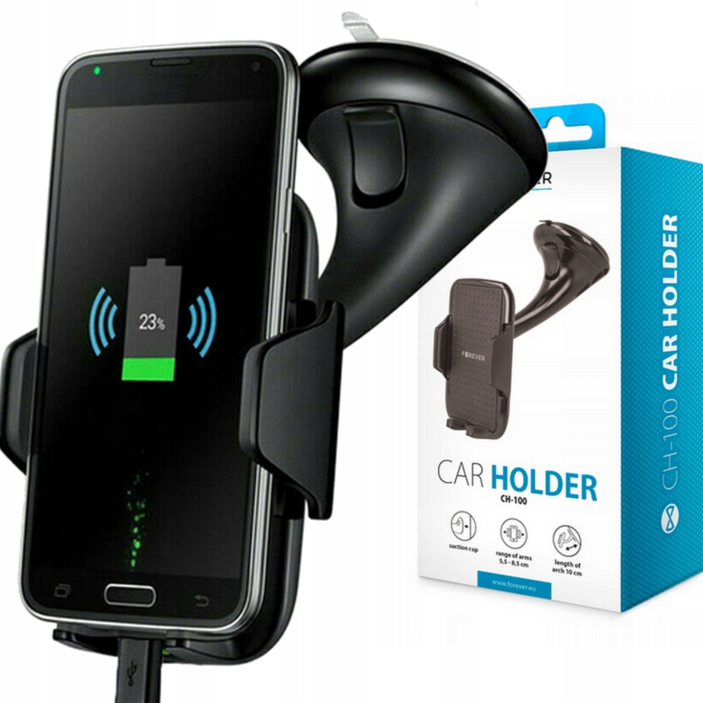Nowoczesne rozwiązania dla Twojego auta! Przedstawiamy uchwyt na telefon FOREVER CH-100 o czarnym kolorze obudowy. Przyda się on szczególnie tym osobom, które chcą w łatwy sposób uzyskać dostęp do nawigacji na telefonie bez potrzeby sięgania po urządzenie ręką. Wszystko, czego potrzebujesz do poczucia komfortu podczas jazdy, jest schowane w tym małym akcesorium!