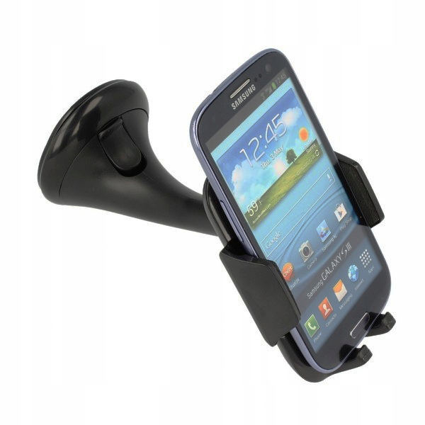 Uniwersalny uchwyt samochodowy przeznaczony do mocowania telefonów i nawigacji samochodowych. Umożliwia wygodne umiejscowienie urządzenia w zasięgu zarówno wzroku jak i rąk kierowcy. Daje możliwość regulacji urządzenia na uchwycie. Wytrzymały, prosty i intuicyjny w obsłudze, wyposażony w mocną przyssawkę, która pozwala stabilnie przymocować produkt na szybie pojazdu. W zestawie uchwyt i ramię mocujące z przyssawką.