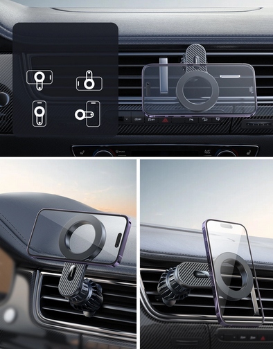 Uchwyt samochodowy do iPhone z MagSafe od Joyroom posiada wbudowane neodymowe magnesy, które gwarantują bardzo stabilne mocowanie smartfona w uchwycie. Uchwyt przeznaczony jest do montażu na klasycznych kratkach nawiewu. Obrotowe ramię zapewnia całkowitą dowolność montażu, dzięki czemu unikniesz zasłonienia wybranych elementów deski rozdzielczej.