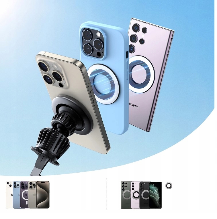 Pasuje do wielu urządzeń. Jest kompatybilny z telefonami o szerokości 60-87 mm, w tym iPhone’ami z serii 12 / 13 / 14 / 15 oraz z etui MagSafe.