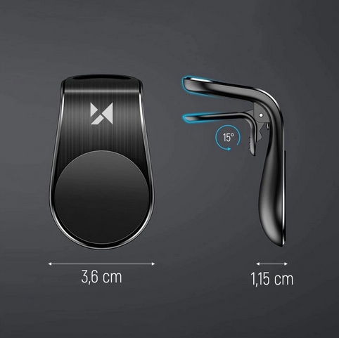 Kompaktowość uchwytu na telefon na kratkę wentylacyjną Wozinsky WCH-02 może zaskoczyć: gadżet ma wymiary 7 x 3,6 x 1,15 cm. Tak niewielki rozmiar sprawia, że uchwyt nie zasłania widoku na drogę. Gadżet możesz zamontować na wielu rodzajach kratek samochodowych. Służy do tego mocny klips, który wystarczy zahaczyć o jeden z elementów nawiewu.