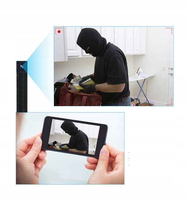 Kamera została zamontowana w przednim panelu urządzenia i zupełnie nie rzuca się w oczy, dzięki stałemu zasilaniu mamy możliwość podglądu obrazu i nagrywania bez przerwy w obserwowanym pomieszczeniu.