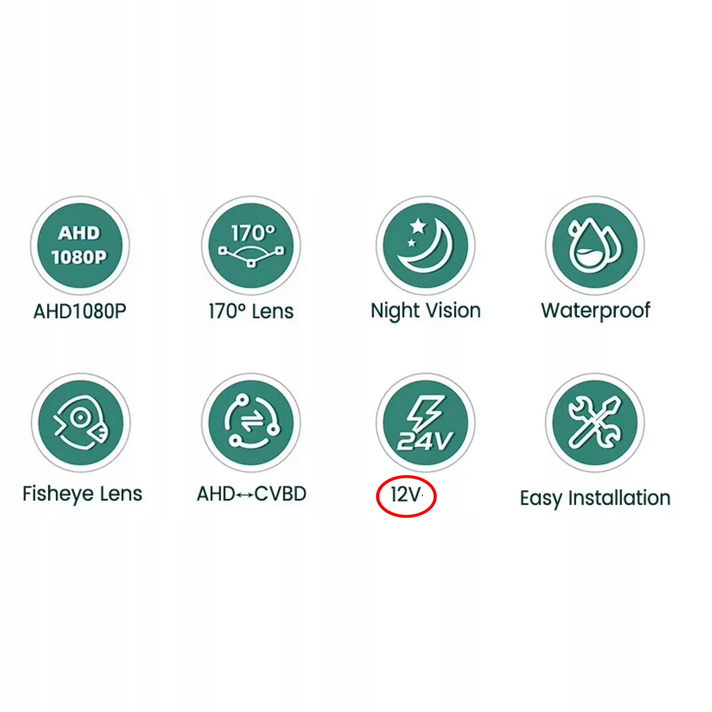 - Wyjście wideo: sygnał wideo AHD lub sygnał CVBS.