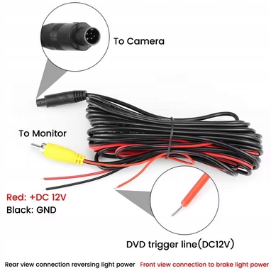 3.Podłącz przedłużacz 6 m kamery parkingowej do jednostki głowicy/innego monitora samochodu.