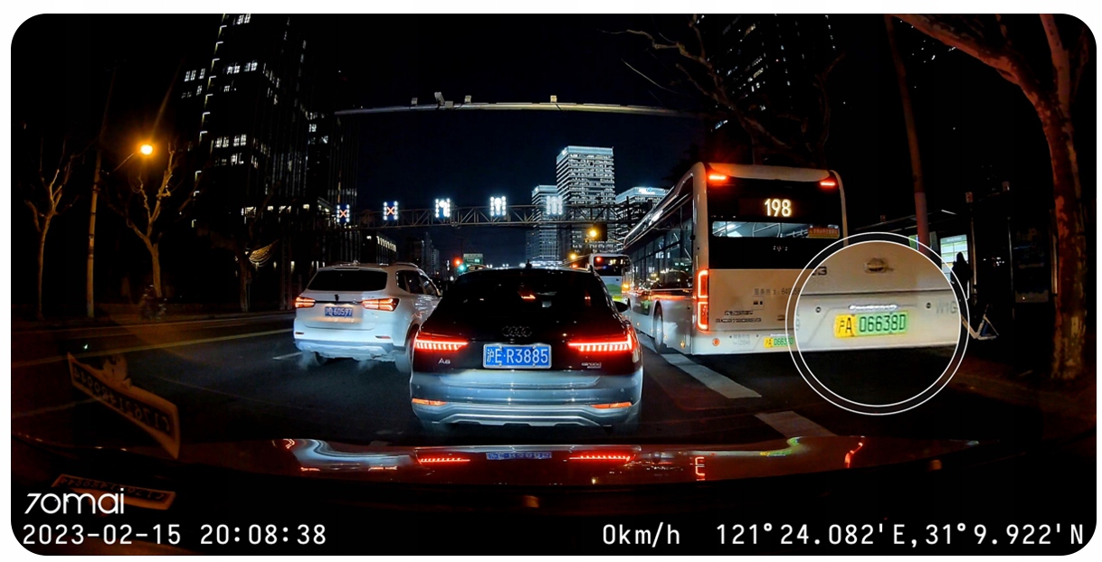 Funkcja selektywnego przetwarzania obrazu pozwala kamerze samochodowej sprawnie identyfikować i wzmocnić istotne elementy nagrania, takie jak tablice rejestracyjne i znaki drogowe. Jednocześnie zmniejsza widoczność zbędnych obiektów otoczenia, takich jak drzewa przy drodze. Dzięki temu kamerze samochodowej 70mai A200 łatwiej jest analizować i rejestrować ważne szczegóły na drodze.