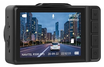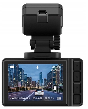 NAVITEL R500 GPS to nowoczesny, kompaktowy wideorejestrator nagrywający obraz w rozdzielczości Full HD (1920×1080). Materiał zapisywany jest w pętli i przechowywany na karcie microSD o pojemności do 128 GB.