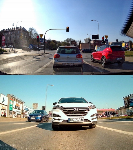 - obraz z kamery przód na połowie + obraz z kamery tył na połowie