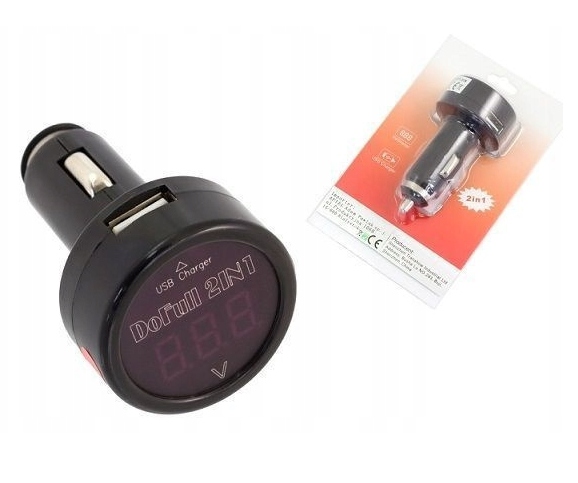 Tester-miernik napięcia akumulatora i alternatora z wyświetlaczem LCD wraz z ładowarką USB.