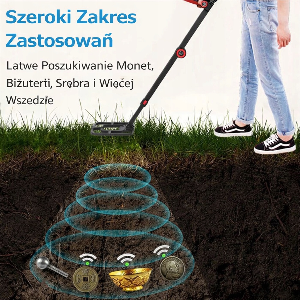 ✅ Identyfikacja rodzaju metalu – urządzenie potrafi odróżnić żelazo od metali wartościowych, takich jak złoto czy srebro.