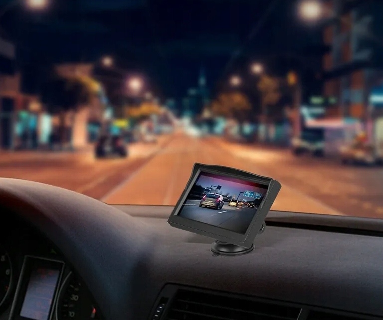 Monitor o przekątnej ekranu 5 cali przeznaczony do podłączenia kamer cofania i innych urządzeń ze złączem RCA cinch. Wysoka rozdzielczość wyświetlacza, zapewnia wyrazisty i bardzo dokładny obraz. Regulowany uchwyt montażowy pozwala na instalacje w każdym pojeździe i w każdej pozycji – na desce rozdzielczej czy podsufitce, za pomocą dołączonego uchwytu z przyssawką do szyby ale także możemy nie używać uchwytu i sam wyświetlacz umieścić np. w konsoli środkowej – wg własnego uznania.