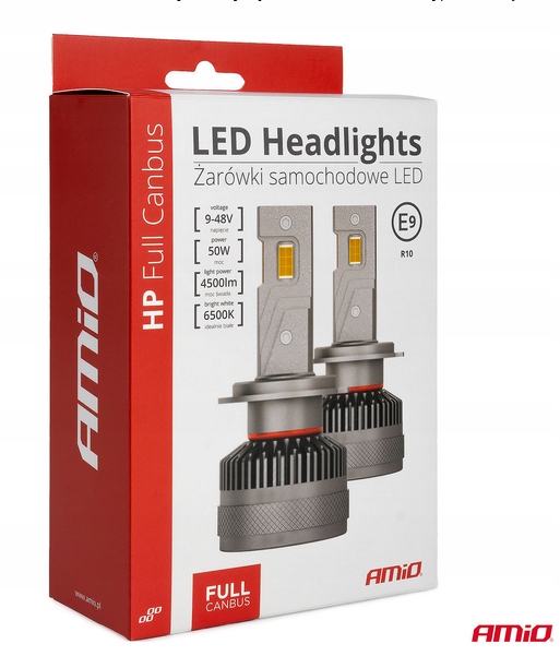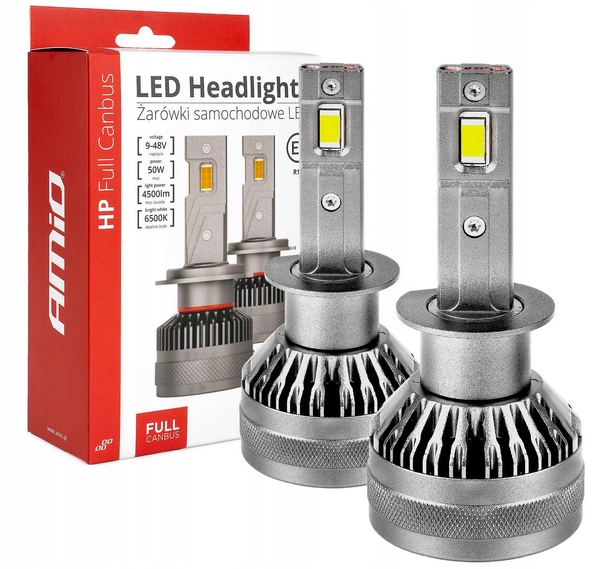 Żarówki LED AMiO seria HP FULL CANBUS charakteryzują się bardzo wysoką jakością wykonania. Proponowany produkt emituje jaśniejsze i bardziej skoncentrowane światło, co pozwala na lepszą widoczność drogi w warunkach ograniczonego oświetlenia, takich jak zmrok, mgła lub deszcz. Źródła światła wykonane w technologii LED są efektywniejsze w procesie przemiany energii elektrycznej na światło widzialne w porównaniu do tradycyjnych żarówek halogenowych. Żarówki te są bardziej odporne na wstrząsy i drgania, co oznacza, że mają dłuższą żywotność niż żarówki halogenowe.