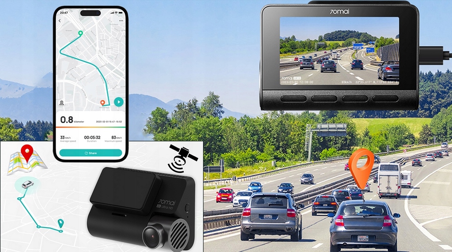 - Wideorejestrator automatycznie śledzi trasę, która zostaje udostępniona do wglądu w aplikacji 70mai po każdej podróży.