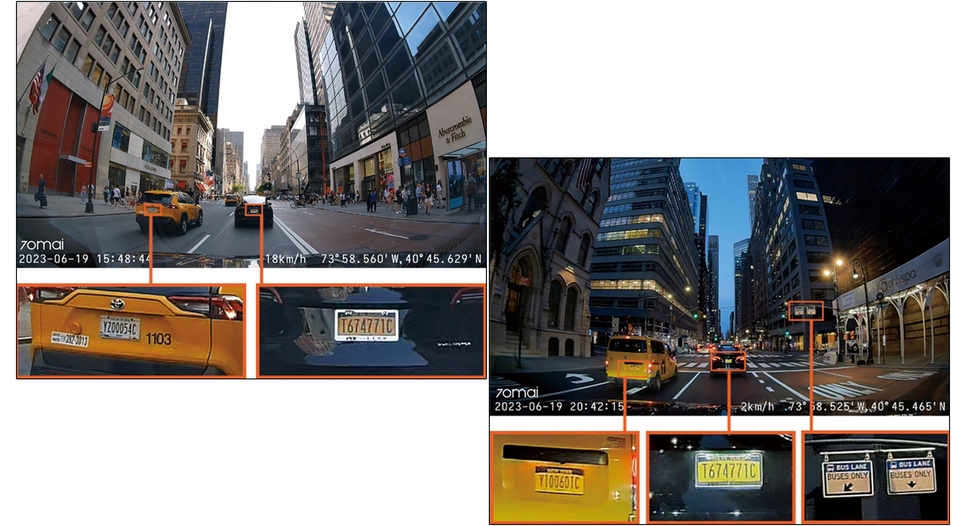- Dodatkowo, w kamerze została zastosowana opracowana przez markę 70mai technologia obrazu MaiColor Vivid + SolutionTM (MVS). Algorytm optymalizacji obrazu IQ pozwala zwiększyć przejrzystość kluczowych obszarów tablicy rejestracyjnej, jednocześnie zmniejszając widoczność mało istotnych elementów otoczenia, takich jak drzewa lub wysokie budynki, które pojawiają się w tle. Optymalizuje jakość materiału filmowego pod względem równowagi ekspozycji, dokładności kolorów i stabilności.