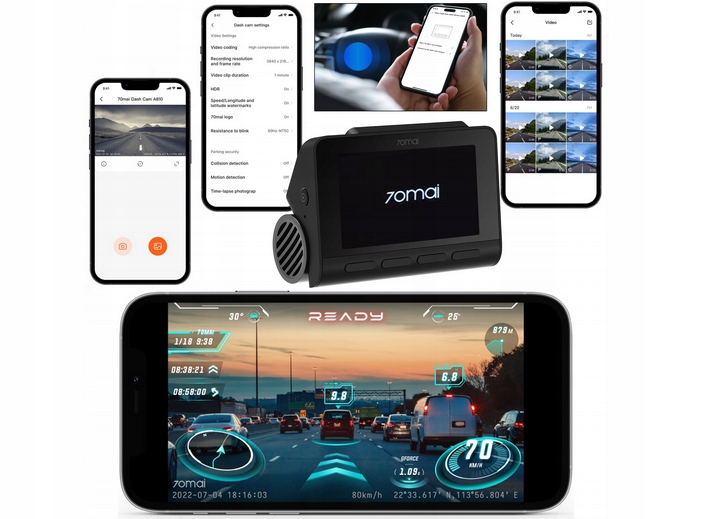 System zapisywania sprawia, że w razie zapełnienia usunięte zostaną najstarsze filmy, dzięki czemu podczas kolizji masz pewność, że zdarzenie znajduje się w pamięci urządzenia. Szybki podgląd nagrań możesz mieć dostępny w swoim telefonie, wystarczy zainstalować na nim dedykowaną aplikację 70mai. Aplikacja jest kompatybilna z systemami IOS i Android.