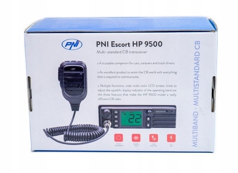 PNI Escort HP 9500 to niezawodne CB radio, który zapewnia wyraźną komunikację na duże odległości. Dzięki obsłudze AM i FM, wielostandardowej, 5-poziomowej automatycznej blokadzie Squelch i regulowanej blokadzie Squelch, dużemu wielokolorowemu podświetlanemu wyświetlaczowi, radio HP 9500 jest wyposażone we wszystkie podstawowe funkcje wymagane do komunikacji w paśmie CB. Na przednim panelu posiada 2-pinowe złącze Kenwood do obsługi urządzenia bez użycia rąk.