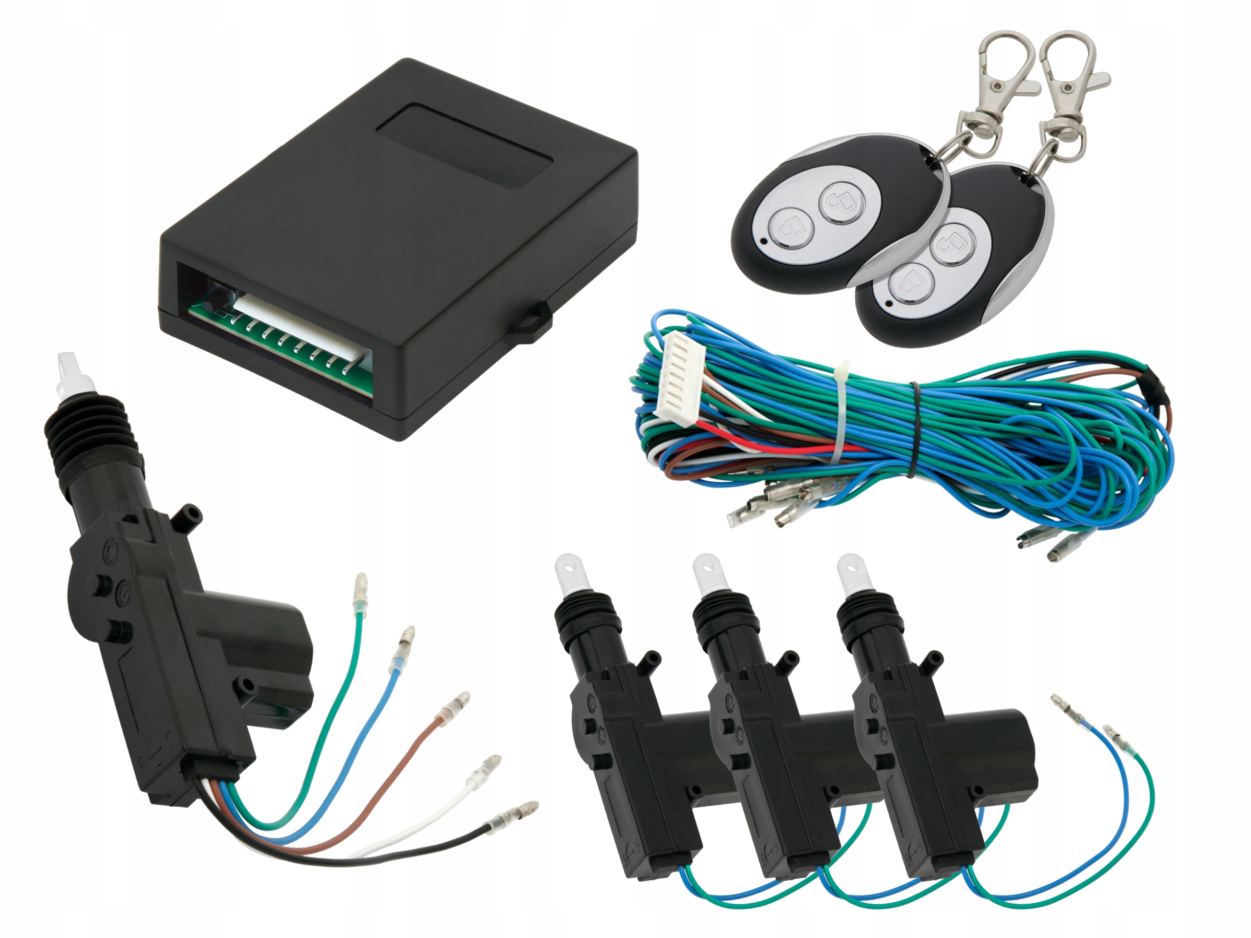 - Zestaw centralnego zamka z siłownikami i zdalnym sterowaniem
