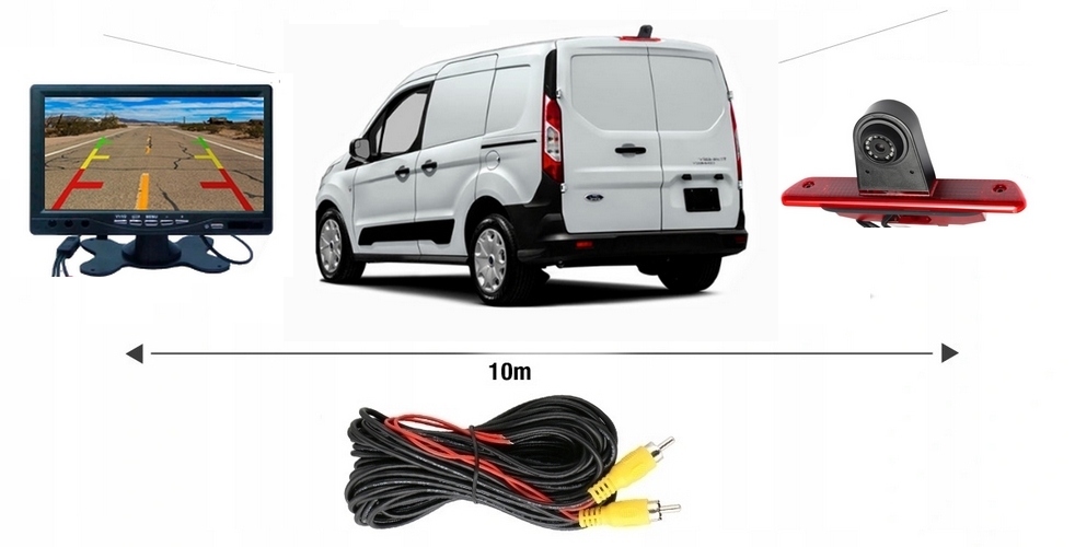 Zestaw składa się z monitora 7″ i światła stop wyposażonego w kamerę cofania.