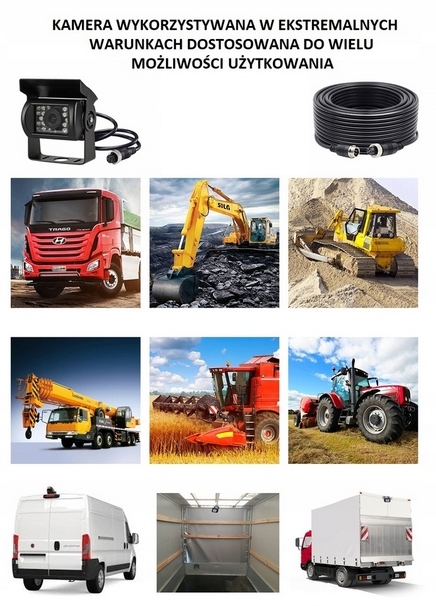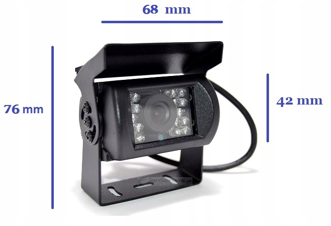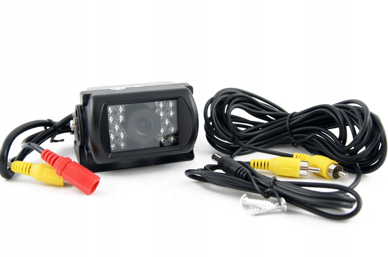 Kamera cofania uniwersalna przeznaczona do busów, tirów i dużych pojazdów ciężarowych odporna na wstrząsy i nieprzepuszczalna dla wody i zanieczyszczeń.