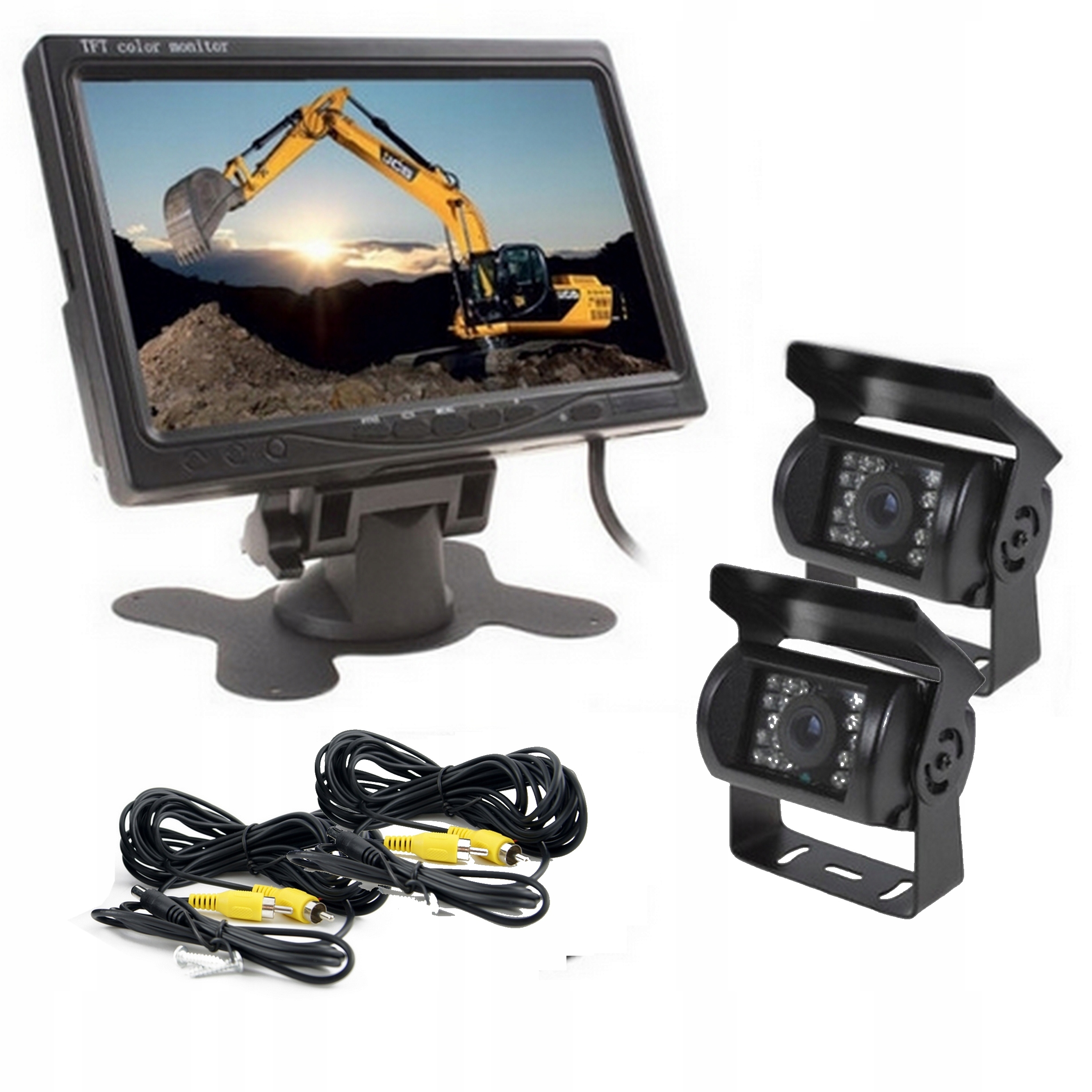 PROFESJONALNY ZESTAW COFANIA 2x KAMERA + MONITOR 7′ + 10m PRZEWÓD CHINCH
