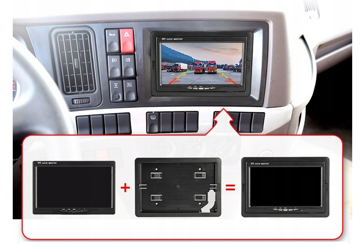 Monitor TFT LCD można zamontować w niemalże każdym samochodzie z napięciem 12V/24V.  Prosty wygląd jakim się cechuje sprawia, że wtapia się w tapicerkę tak jakby był urządzeniem dedykowanym do montażu w twoim aucie.