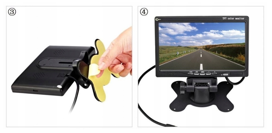 Monitor TFT LCD z dużym ekranem o przekątnej 7″ i wysokiej rozdzielczości 480 x 272 pixele zapewni świetny obraz, nie tylko dla kamery cofania, ale również innych urządzeń (np. DVD samochodowe). Dzięki dwóm wejściom VIDEO można podłączy dwa sygnały VIDEO jednocześnie, np. dwie kamery – jedną na przód, drugą na tył, dodatkowo DVD. Sygnał będzie przełączany automatycznie.
